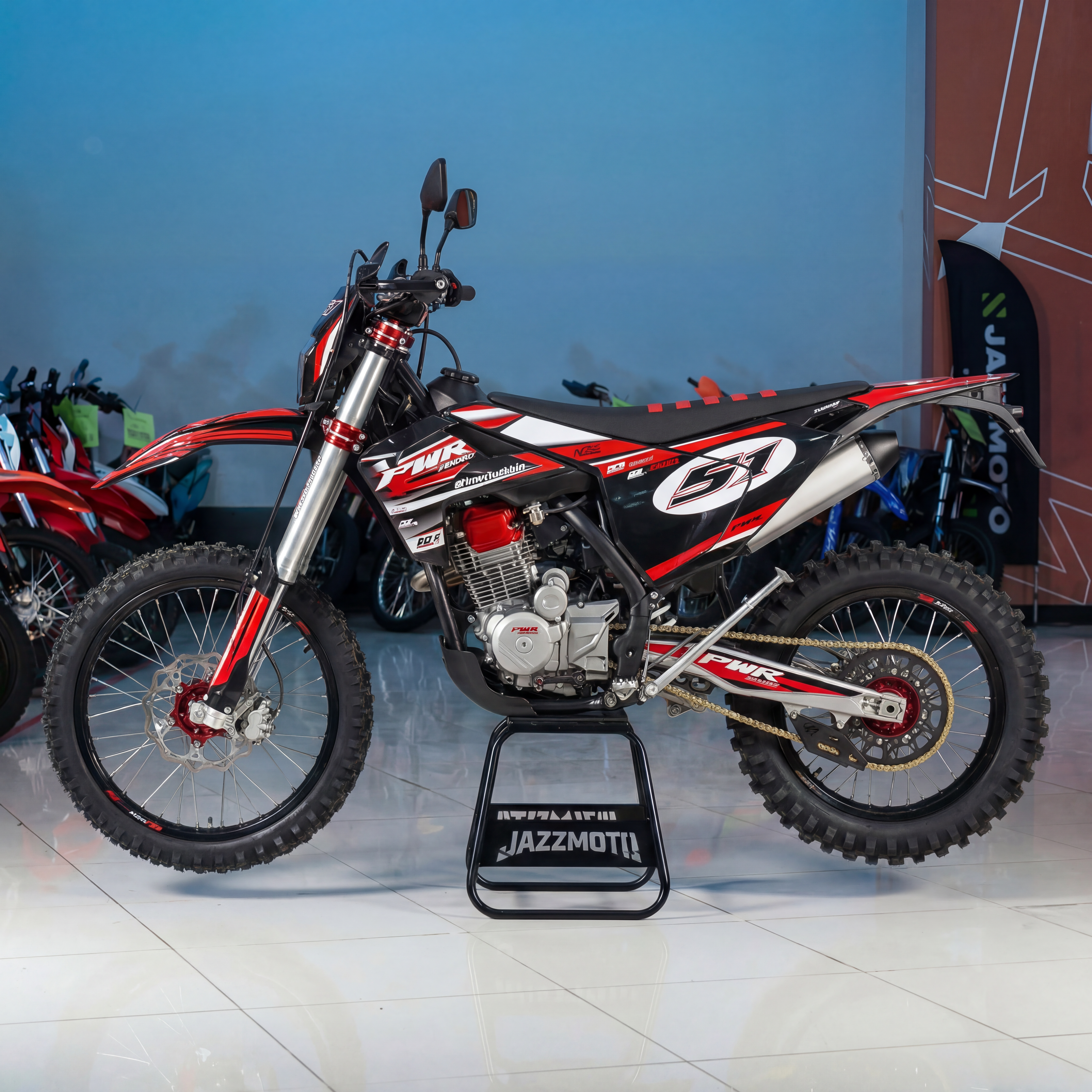 PWR FS300 NC — это флагманская модель для тех, кто ценит мощность, легкий вес и исключительную управляемость. Полностью настраиваемая подвеска GPX, прочный облегченный маятник из алюминиевого сплава и большое количество алюминиевых деталей делают этот кроссовый мотоцикл удачным выбором для мотокросса, бездорожья и продолжительной эксплуатации.