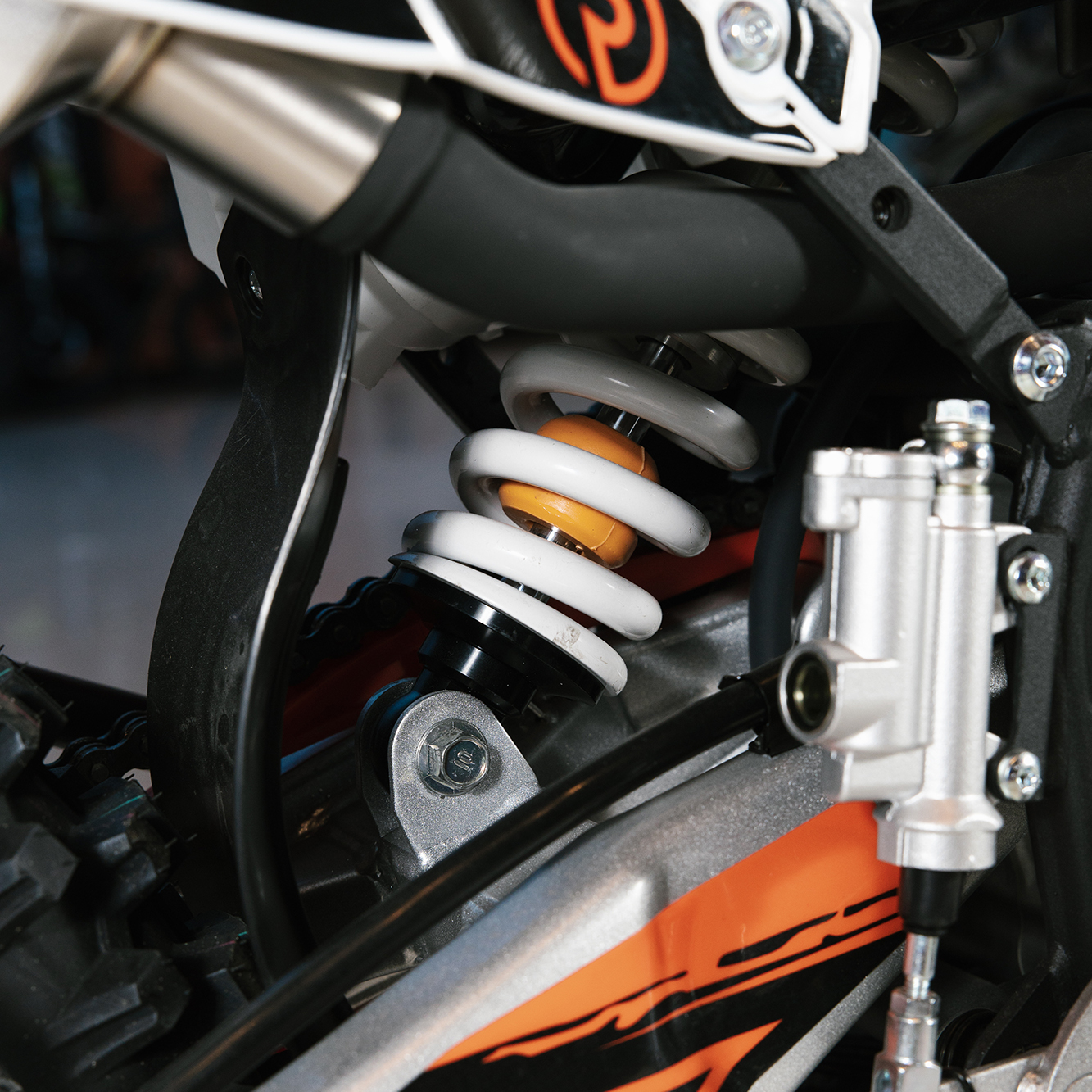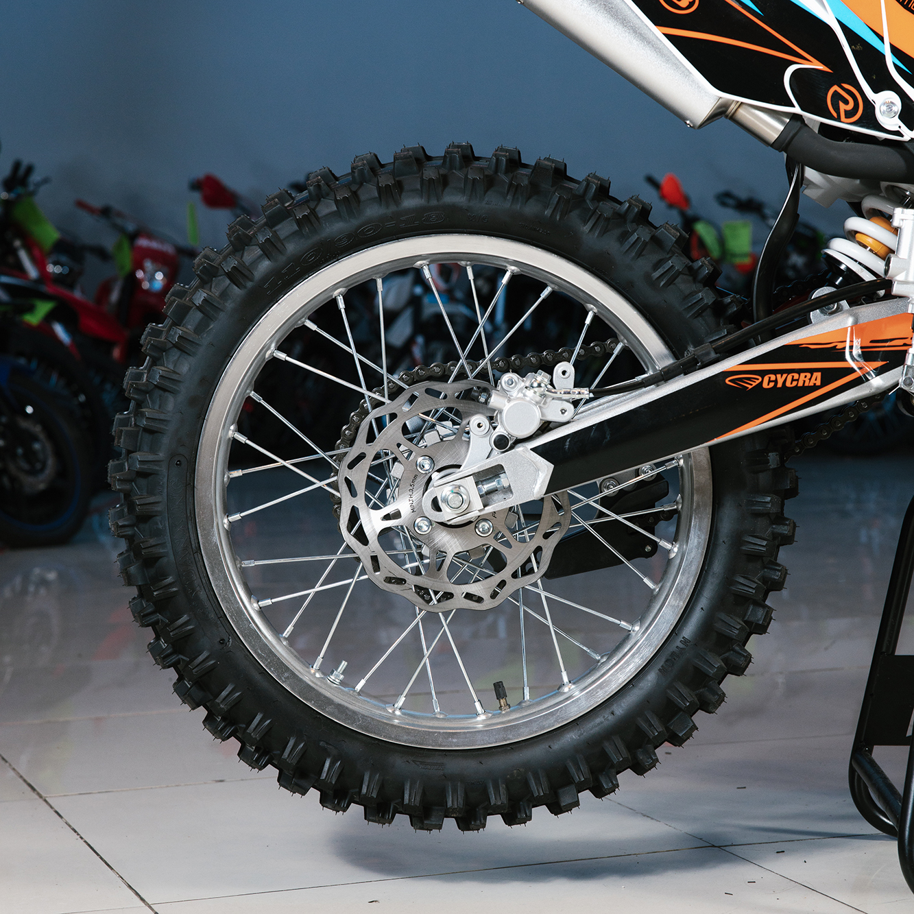 Усиленная рама из хром-молибденового сплава и подвеска позволяют эффективно амортизировать удары при езде по неровностям и препятствиям на трассе. Передняя подвеска телескопическая вилка перевёрнутого типа от фирмы KKE длиной 800 мм, задняя — нерегулируемый моноамортизатор 360 мм, рассчитанный на высокие нагрузки до 900 LBS, также произведённый компанией KKE. Мотоцикл оснащён классическими спицованными колёсами диаметром 18 и 21 дюйм. Колёса имеют усиленные обода из алюминиевого сплава и буксаторы. Эффективное и безопасное замедление с любых скоростей обеспечивают гидравлические дисковые тормоза.