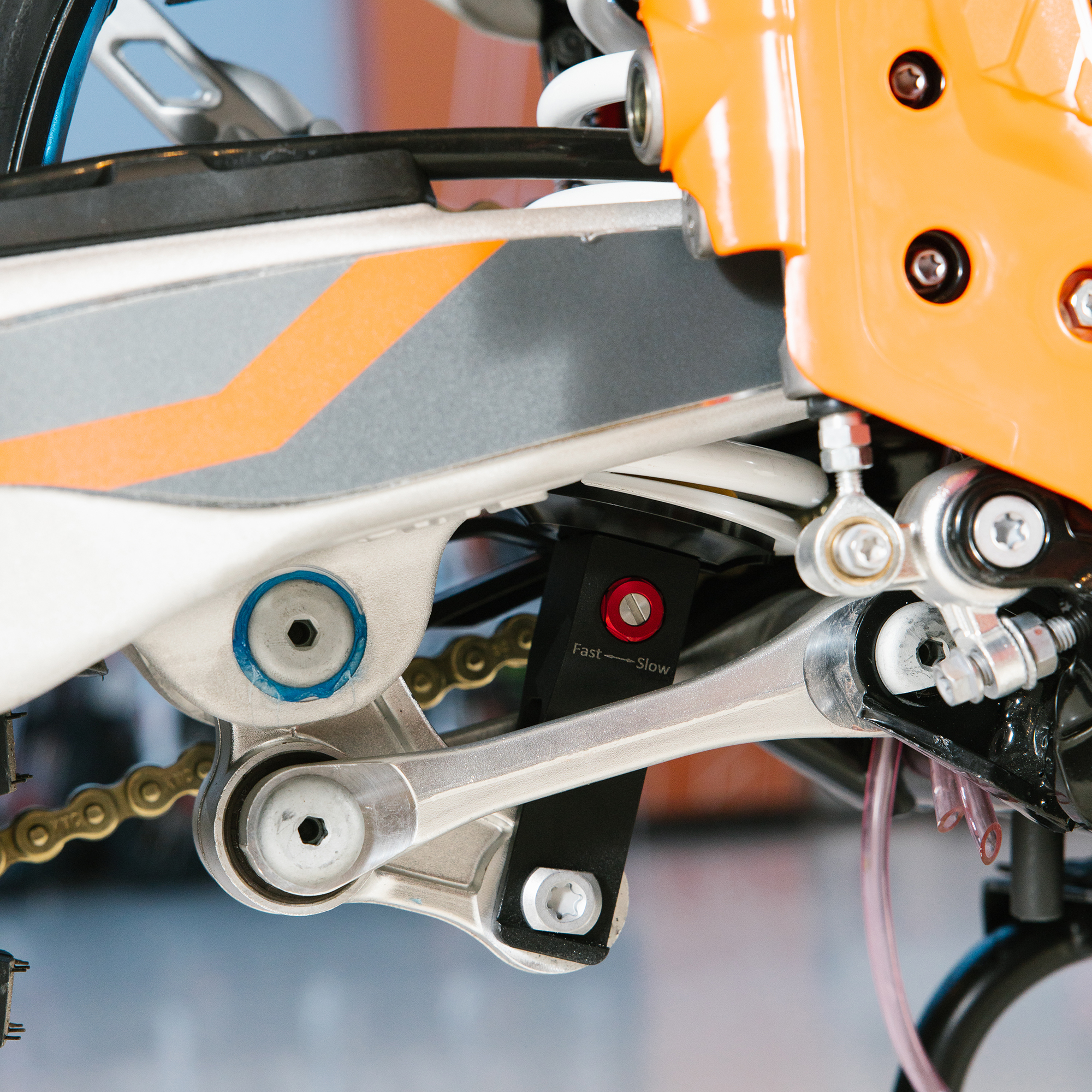 Передняя вилка "MNT" перевернутого типа T7 48- 910mm с регулировкой на сжатия и отбой. Моноамортизатор "MNT" также с регулировками. Система прогрессии, обеспечивает равномерную, мягкую работу и увеличивает длину рабочего хода подвески. Также ось крепления маятника совпадает с осью крепления ножки. Это существенно улучшает развесовку мотоцикла.